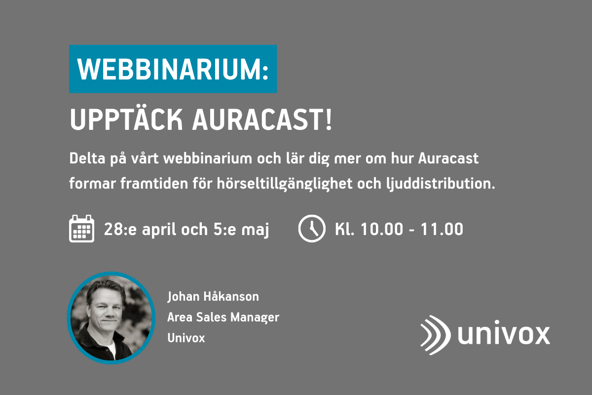 Välkommen till Univox! Assistive listening since 1965 Nyheter IR-extender IR 1211 och Kopparfoliekabel 1×1,25 mm² utgår Nästa stopp: Monitor Roadshow Södra Sverige Auracast-nyheter från Univox Var och varför?