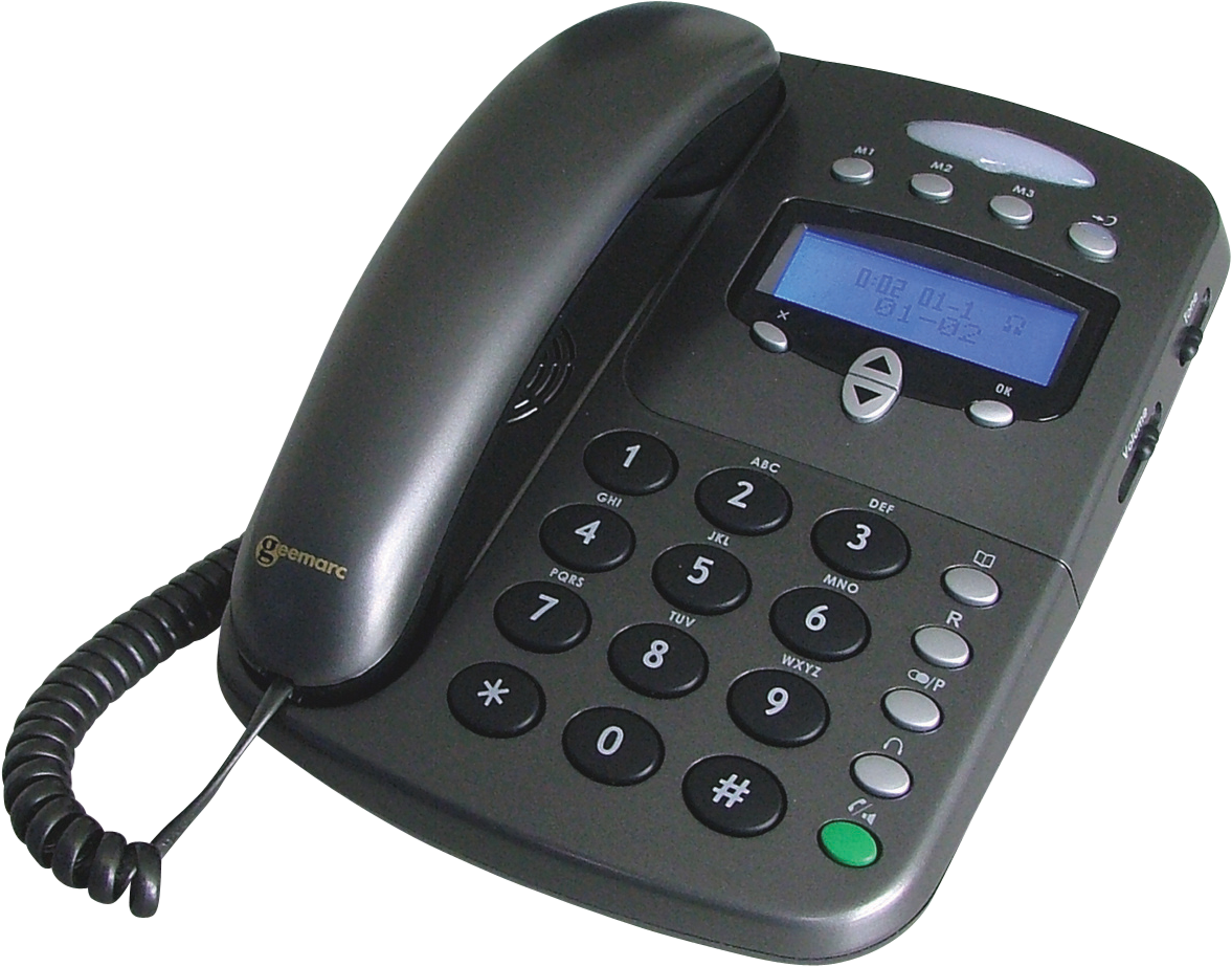 Telefon med hörslinga, nummerpresentatör och förstärkning upp till 30 dB