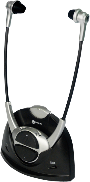 Sändaren, som också används som laddstation, ansluts enkelt till ett ljuduttag i din TV eller ljudanläggning och skickar ljudet trådlöst till hörlurarna. Efter användning ställer du tillbaka lurarna i sändaren/laddaren. Då vet du alltid var du har dom och hörlurarna är alltid laddade när du behöver dom.
