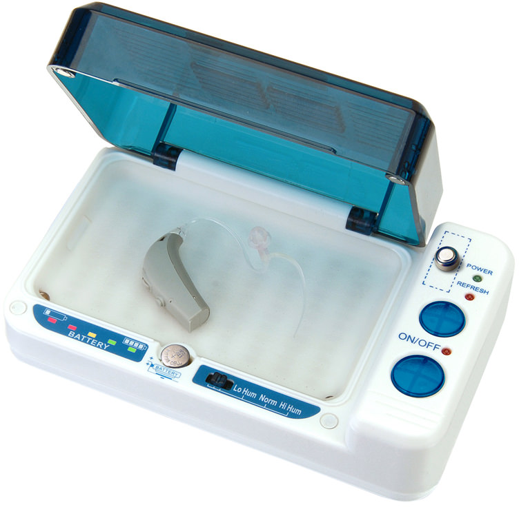 - Mild och torr värme avlägsnar fukt och kondens från hörapparater/CI-processorer