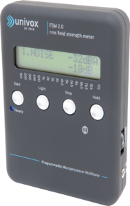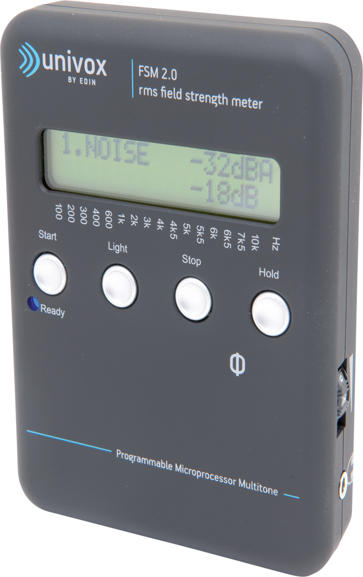 Univox FSM 2.0 är en modern fältstyrkemätare med helt unika funktioner och mätegenskaper. FSM 2.0 är byggd kring en mikroprocessor som hjälper dig att utföra avancerade mätningar. Den nya automatiserade multiton-metoden ger snabbare och mer precisa och reproducerbara mätresultat jämfört med att använda ”pink noise”. Alla detaljer kontrolleras av mikroprocessorn och resultaten visas tydligt på den upplysta LCD-skärmen. Alla steg i mätproceduren är enkla att utföra och kommer i logisk följd enligt mätcertifikatets utformning.