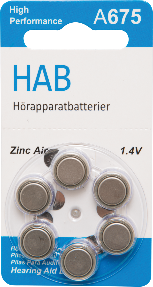 HAB är vårt eget märke av zink/luft-batteri för hörapparater. HAB hörapparatbatteri är ett prisvärt zink/luft-batteri av hög kvalitet.