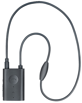 Med en och samma knapp sköts Bluetooth-parning och samtalshantering som svara och avsluta. Volymkontroll finns på sidan. Vibrationer i både apparaten och, något lättare, i halsslingan, uppmärksammar användaren om inkommande samtal.