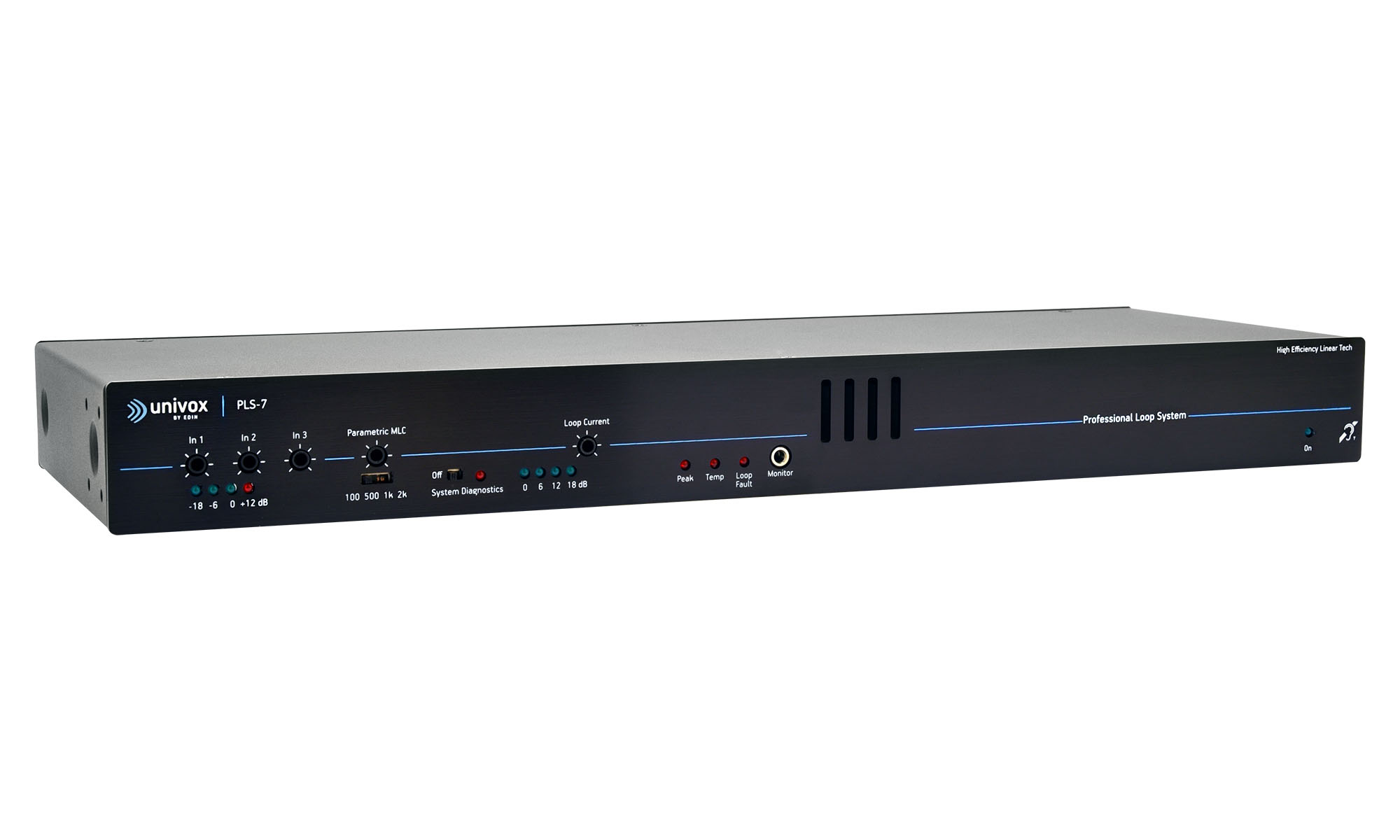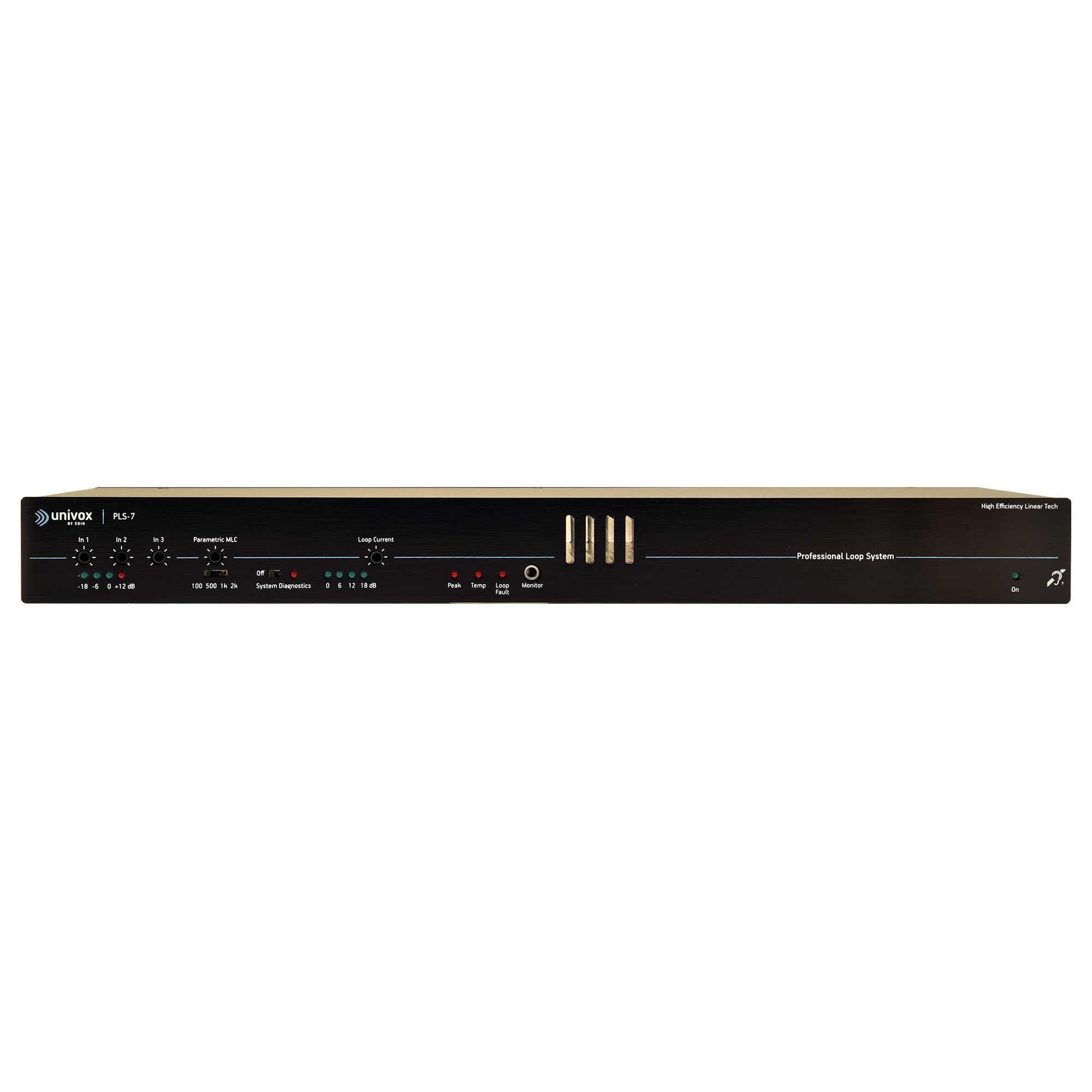Univox PLS-7 är en kraftfull slingförstärkare anpassad för hörslingeinstallation i mycket stora lokaler. PLS-7 levererar upp till 100 Vpp/20 Arms och med ett brett frekvenssvar från de balanserade utgångarna ger PLS-7 utmärkt dynamik och exceptionell ljudkvalitet. Vår banbrytande filterbank eliminerar all klass-D-associerad olinjäritet och störningar. Tack vare den fläktfria, helt tysta konvektionskylningen och klass-D värmeavledning kräver förstärkarna inget extra ventilationsutrymme i ditt AV-rack. PLS-7 är utvecklad med beprövad Univox-teknik med elektriska transformatorer och fläktfri design och är en pålitlig produkt med lång livslängd från Univox.