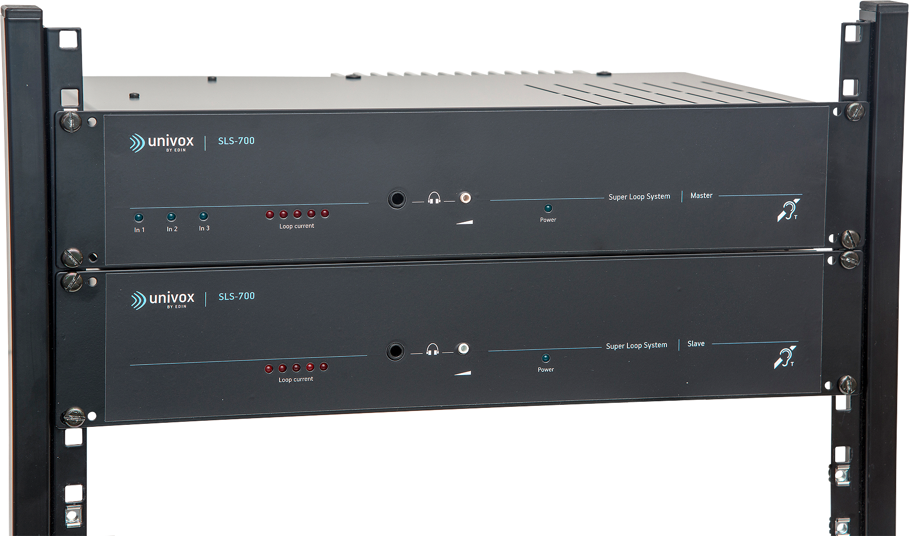 Univox SLS-700/900 bygger på två separata slingfigurationer, Master och Slave, som kopplas till varsin 19″ rackenhet med matchade slutsteg. Master- och Slave-enheterna är sammankopplade med en signalkabel på baksidan och alla signalkällor kopplas till Master-förstärkaren. De kraftfulla slutstegen gör SLS-700 speciellt lämplig för stora ytor – teatrar, kongresshallar, idrottsanläggningar. För mycket svåra miljöer med extra kraftig armering finns även ett starkare alternativ i SLS-900. Rätt projekterad, installerad och injusterad kan SLS-700 täcka ytor upp till ca 650m2.