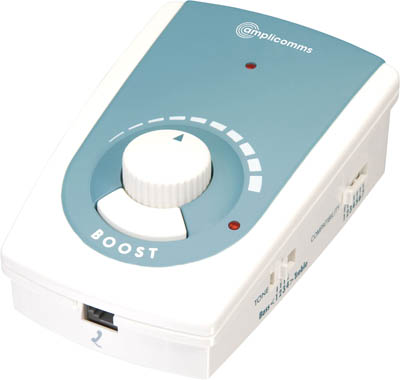 Volymkontrollen ger en förstärkning på upp till 45 dB. Samtidigt som man talar i telefon kan man anpassa inkommande ljud genom att vrida volymkontrollen på förstärkaren. Behöver du ytterligare förstärkning av ljudet så trycker du och håller ner Boost-knappen. När du vill tala släpper du knappen, eftersom mikrofonen för din röst tillfälligt stängs av när Boost-knappen hålls nere.