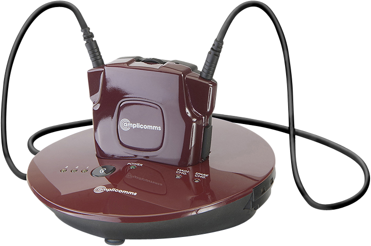 Sändaren, som också används som laddstation, ansluts enkelt till ett ljuduttag i din TV eller ljudanläggning och skickar ljudet trådlöst till halsslingan. Efter användning sätter du tillbaka den i laddaren/sändaren. Då vet du alltid var du har den och den är alltid laddad när du behöver den.