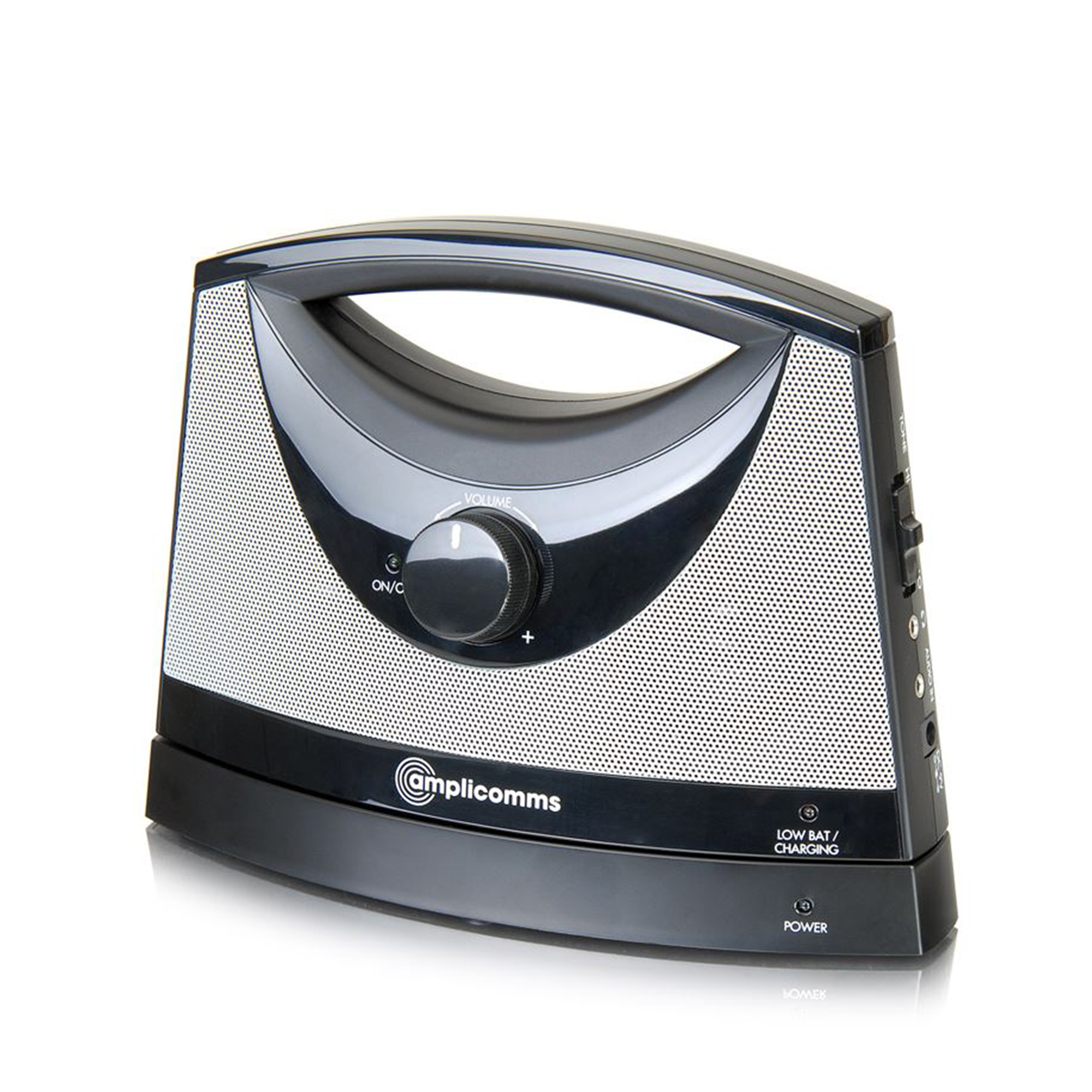 Högtalaren är en bra lösning för dig som har nedsatt hörsel och som inte vill bära hörapparat eller annan apparatur på huvud eller axlar. Den lättanvända högtalaren är enkel att ta med sig till fåtöljen, soffan, köket eller ut i trädgården.